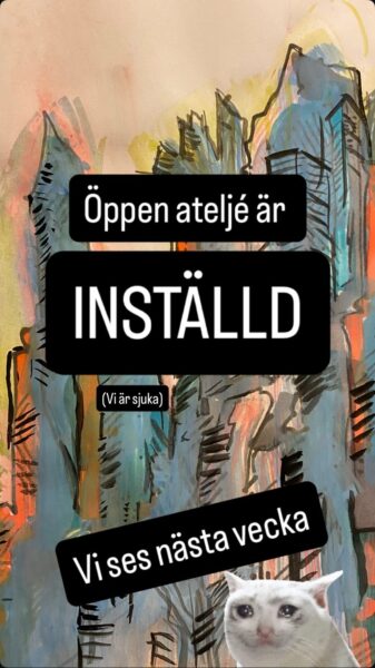 Öppen ateljé håller stängt idag 10 februari på grund av sjukdom.